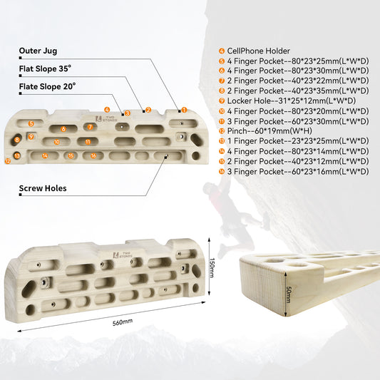 TWO STONES Wooden Hangboard Rock Climbing Pull Up Bar Designed Training for Climbing, Wooden Fingerboard Climbing Training Board