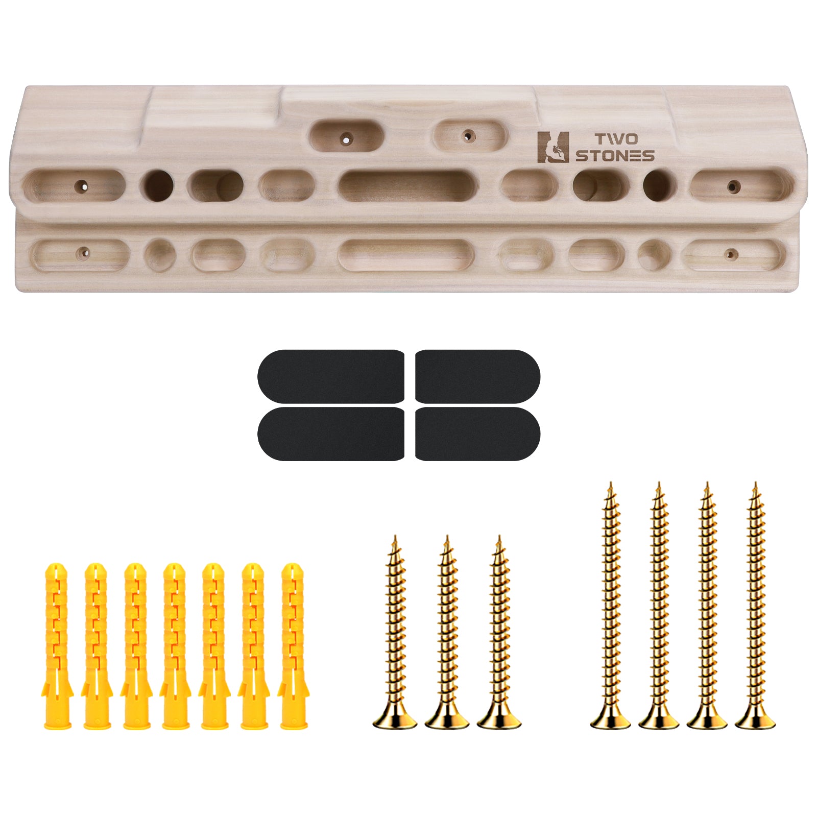 - 💪[Easy to Install]: The rock climbing fingerboard is doorway and including mounting hardware as 7 screws (4 Pcs of M4*70 mm and 3 Pcs of M4*50 mm) and 7 Pcs of expansion tubes;