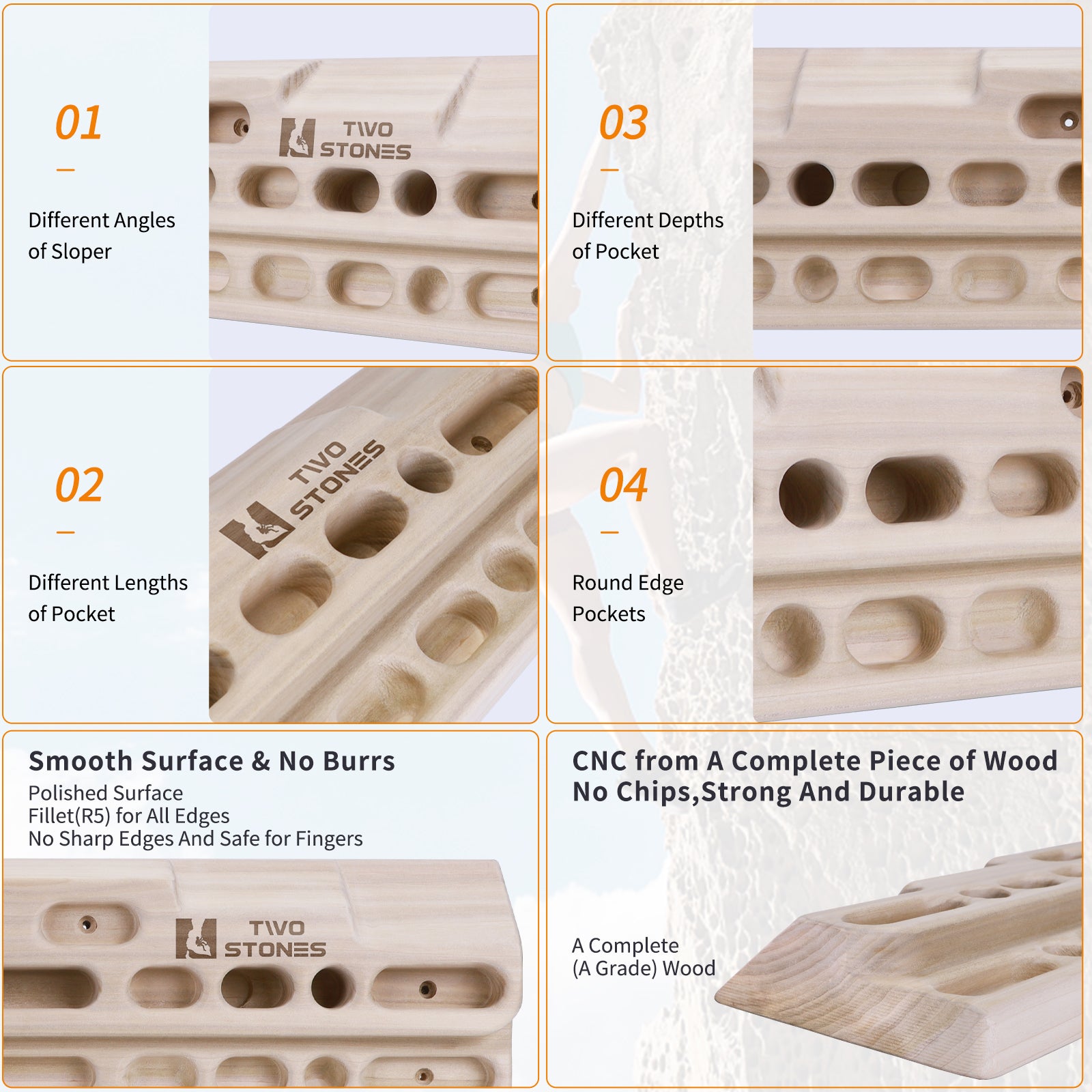- 💪 [Strong and Durable]: The climbing fingerboard is CNC milled from a complete natural rail wood block( no chips and splicing) without any scabs, strong and durable;